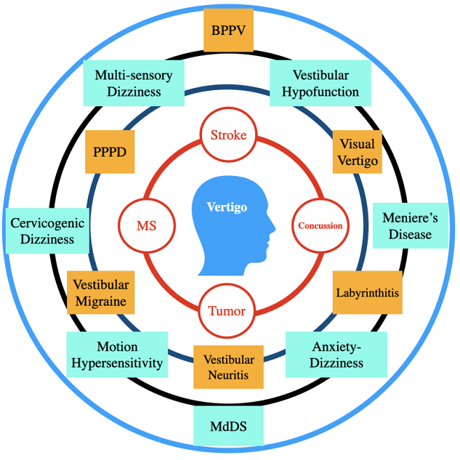 Dizziness/vertigo is not a condition. It is merely a symptom of an underlying condition. The causes of dizziness/vertigo can range from trivial causes such as feeling dizzy when we stand up quickly after sitting for a while to life-threatening conditions such as stroke and brain tumour. Fortunately, the most commonly occurring dizziness are due to benign conditions such as BPPV, Vestibular migraine, age-related multi-sensory balance issues and PPPD.